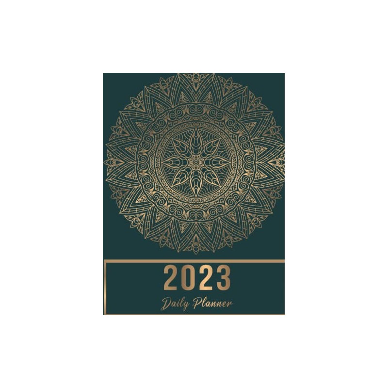 2023 Daily Planner: A Large Daily 12 Month Planner Full Year Lined Planner Notebook Journal, From Jan 2023 to Dec 2023, Green Cover with Golden Mandala
