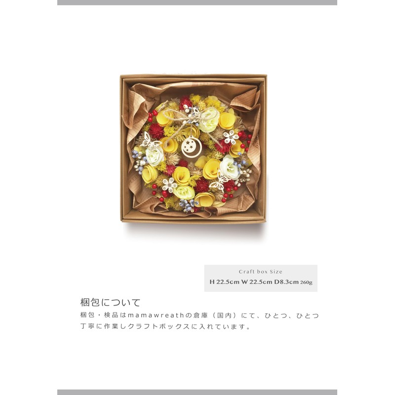 [2023 mamawreath D New Year Ornament] Flower Wreath, Entrance Decoration, New Year's Wreath, New Year's Wreath, Interior, Japanese Wreath, New Year (Yellow Moon Wreath (W-005-M))