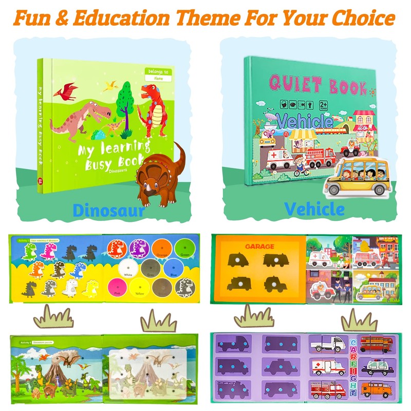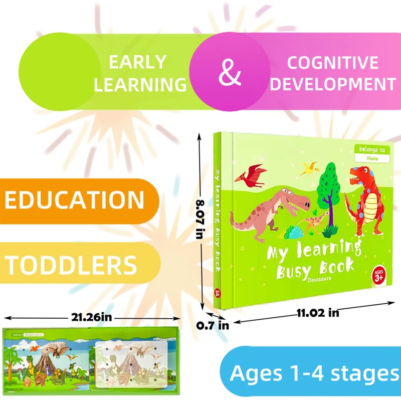 - 【 EARLY LEARNING FOR TODDLERS 】This busy book for toddlers is a great way for your little one to develop learning skills and improve cognitive skills. Through play children learn basic skills, memorization, identification and hand-eye coordination. We have carefully designed dinosaur theme of graphic pattern for your chioce that is suitable for toddlers, kids of early learning and cognitive development.