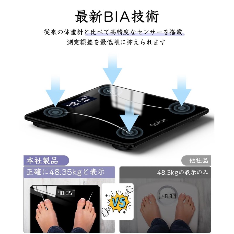 - 【高精度センサー・最大測定】四つの高精度センサーを搭載し、革新技術を利用しているので、体重をより正確に測定できる体重計。体重計デジタルは最大計量:180kg、最小表示単位:0.1kg単位として計算した 体重計 です。