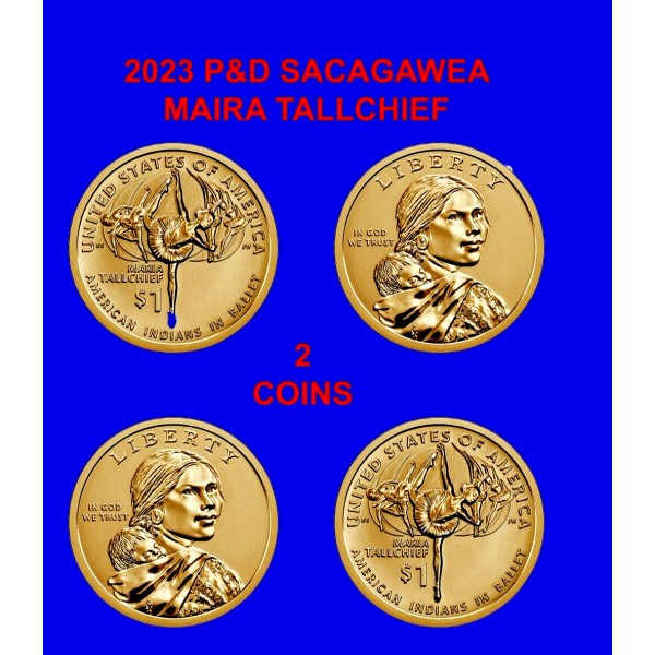 2023 SACAGAWEA P & D NATIVE AMERICAN MAIRA TALLCHIEF DOLLAR 2 COINS