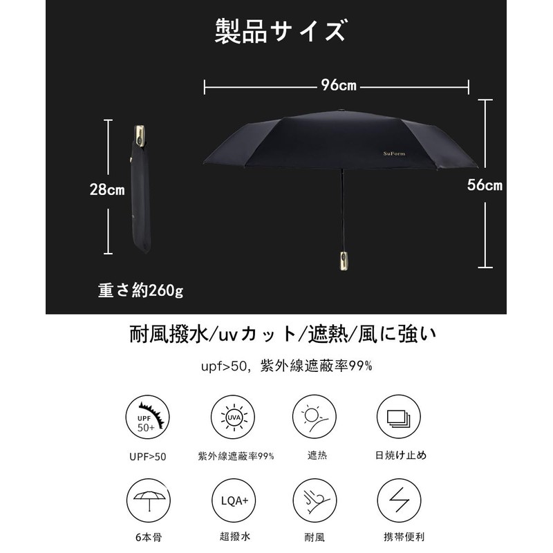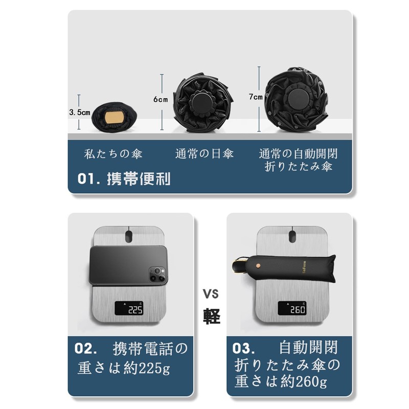 • 【Lightweight & Portable】 The folding parasol is flat design and can be easily put into your bag. The folded thickness is only 1.6 inches (4 cm), length is 10.6 inches (27 cm), weight is about 9.2 oz (260Ultra compact body is convenient to use and carry. It can be used in all weather conditions, rainy day, snowy or sunny weather. One-touch automatic open and close folding umbrella for men and women. Can be used for commuting to school, work, excursions, travel, business trips, etc