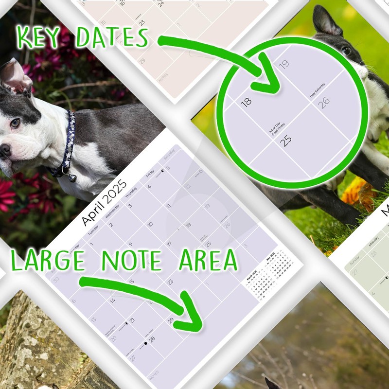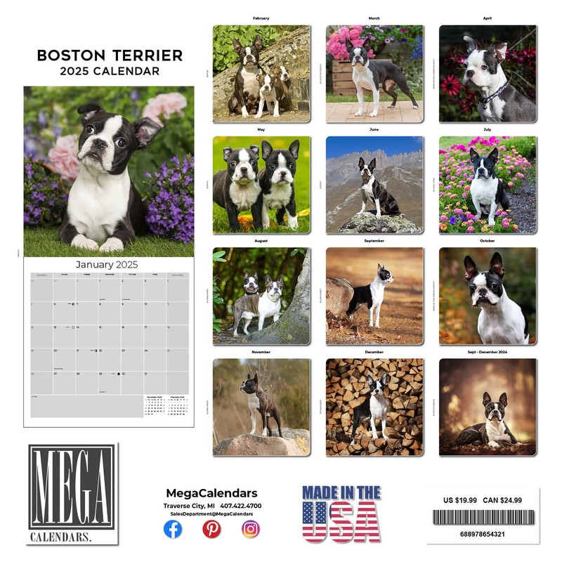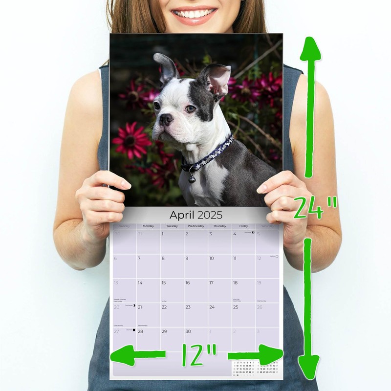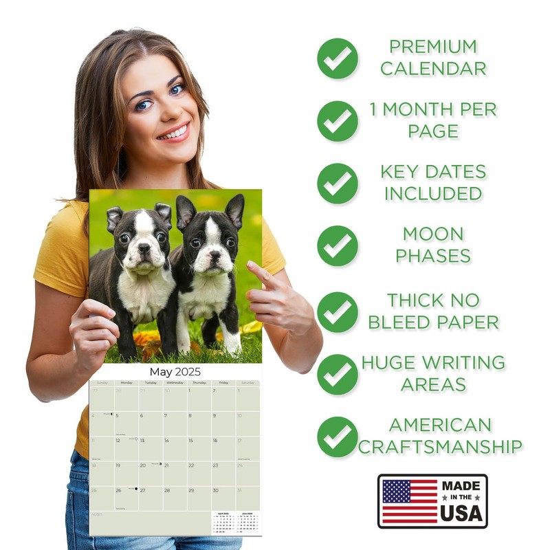 - PREMIUM PAPER - Each of our small batch Boston Terrier calendars runs uses the thickest paper in their class. Our artisans produce these premium BONUS month 2025 Boston Terrier Puppy calendars with high-definition Boston Terrier images and print them right here in the U.S.A. using the highest quality inks and environmentally friendly American paper from responsible sources.