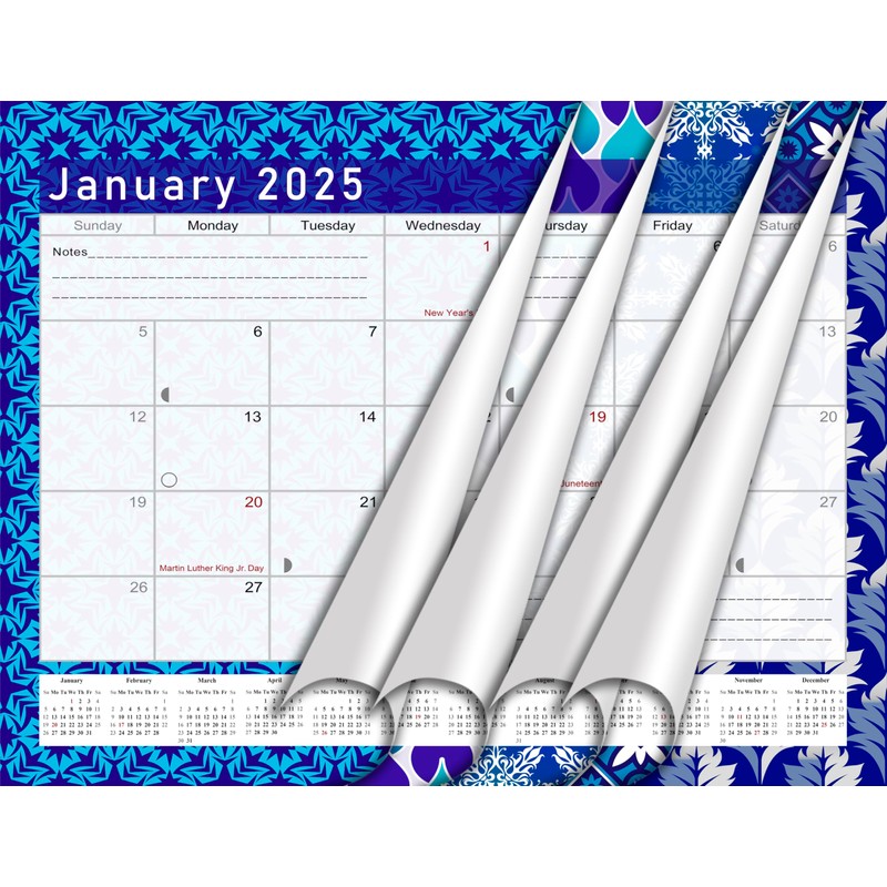 • The 18-monthly calendar runs from July 2024 through December 2025. Pages are perforated for easy removal. Full year-at-a-glance at the bottom of every page. Unique and vibrant design each month. Portable and compact, fits in standard 3-ring binders, laptop bags, and backpacks. Use as a desktop calendar, 3-hole punches allow the option to also hang on your wall!