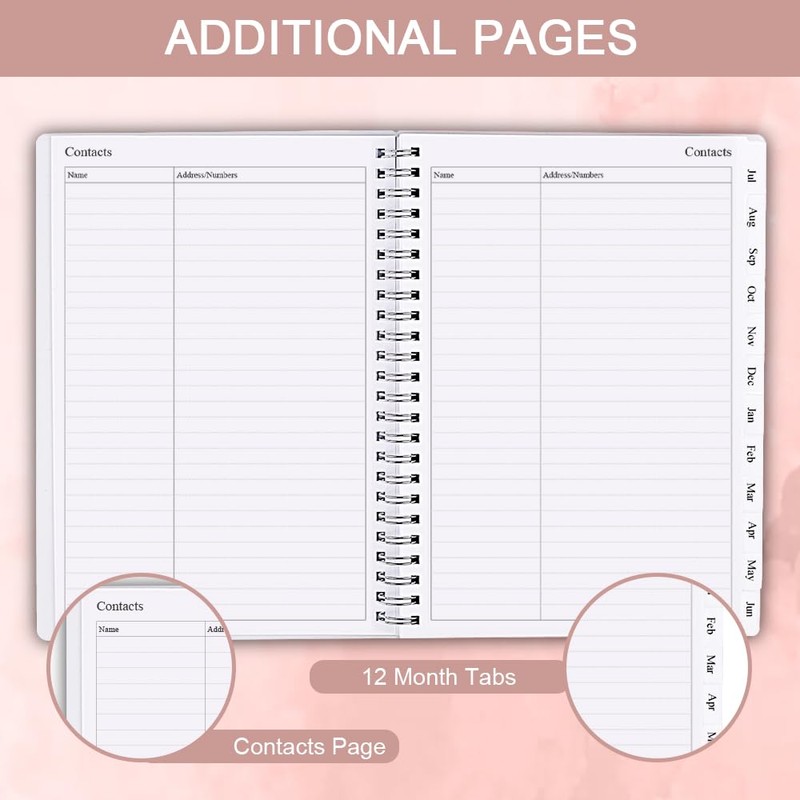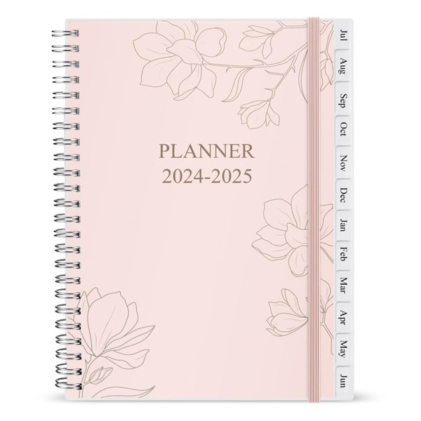 2024-2025 Planner - Weekly & Monthly Planner Runs from Jul 2024 to Jun 2025, 7" x 10", 12 Monthly Tabs, Notes Pages, Inner Pocket, Flexible Cover with Twin-Wire Binding, Pink