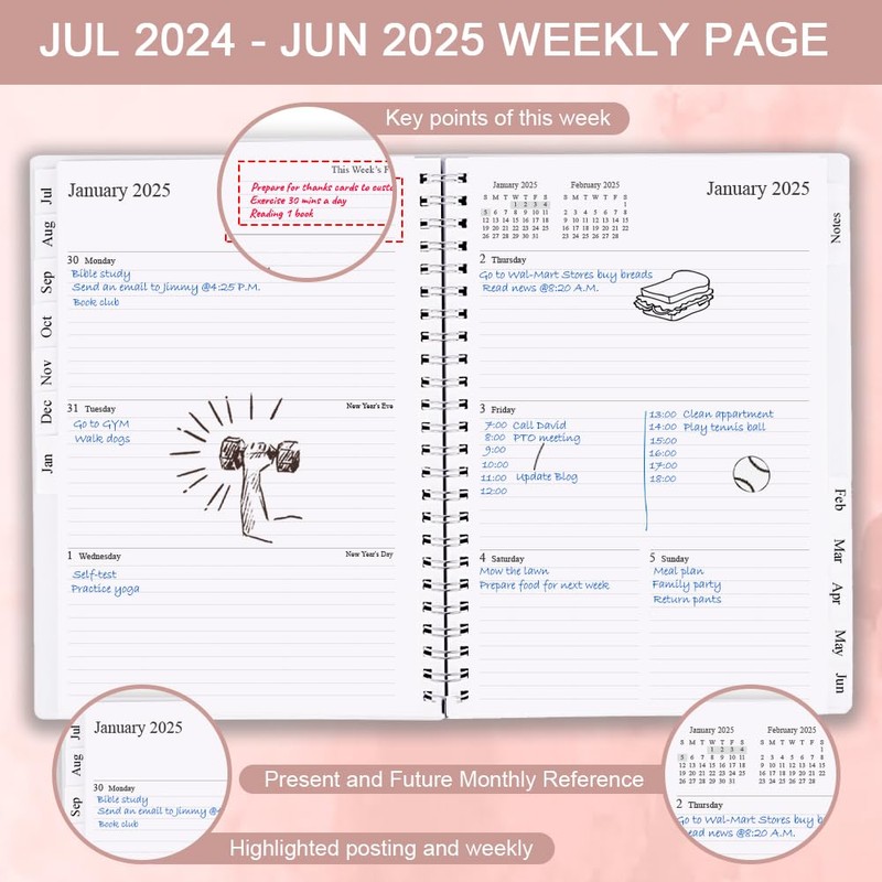 - This 2024-2025 planner 7'' x 10'' spans from Jul 2024 to Jun 2025, offering a full year of well-organized planning. Its calendar sections feature 12 months of monthly and weekly pages, making it ideal for year-round planning