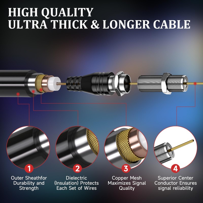 - 360°SIGNAL RECEPTION | FITS ANYWHERE - TV receives signals from 360°. Premium audio, richer color, faster refresh rates, optional integration with your internet service for extra features and more! 38ft Thick cable can work great anywhere, it can be installed on the walls, window, tabletop, cabinets, outdoor scenes,etc. Antenna fits Home, underground garage, company, outdoor cookout, RV, etc. You can receive stable signals even in bad weather!