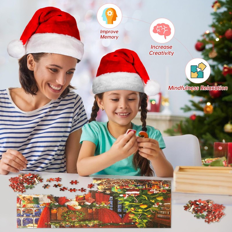 - Christmas Santa Claus Theme: Immerse yourself in the holiday living room by the Santa Claus's gift with this themed Advent calendar puzzle.Each day from 1 to 24 December unveils this warm holiday landscape that captures the magic of the Christmas.