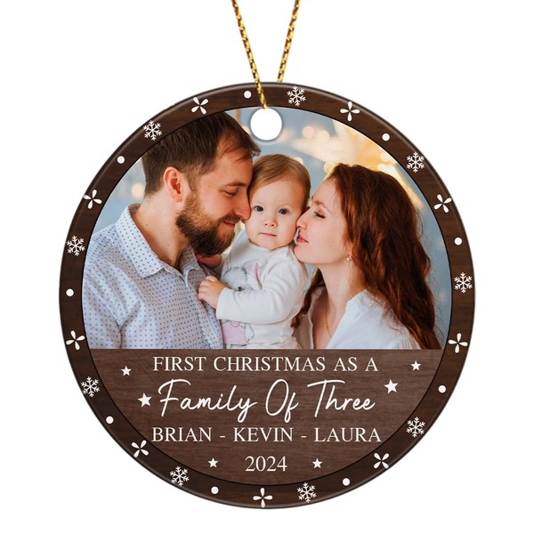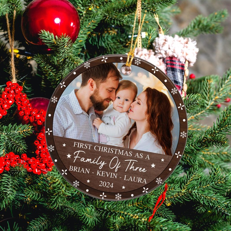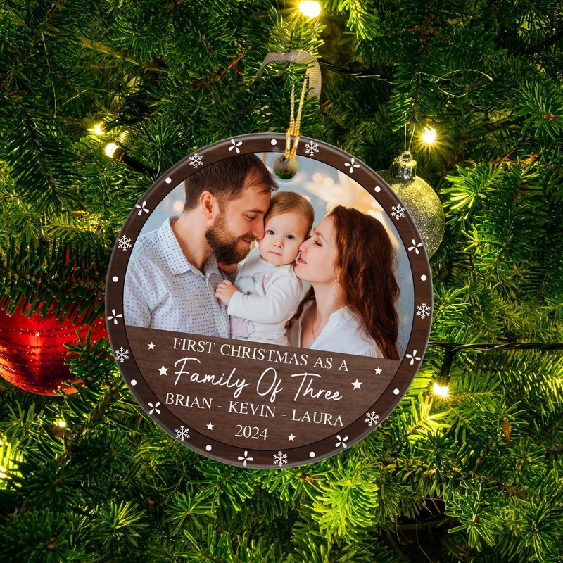 2024 Customized 1st Xmas As A Family Of 3 Ornament, First Christmas As A Family Of Three Ceramic Ornament 2024, Custom Photo & Name Family Of 3 Ornament, New Parents Keepsakes, New Mom Dad Ornament