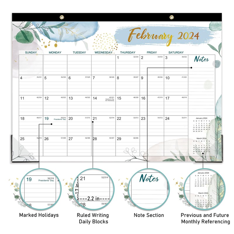 - 📆Monthly Overview - Each month in this 2024 desk calendar features daily ruled writing blocks ( 1.7"×2.2") for a neat scheduling and 2 months reference calendar for long-term planning. Also, this 2024 calendar marked holidays and highlighted federal holidays to remind you of every important date. You can use it to keep track of everything going on at home, school or the office.