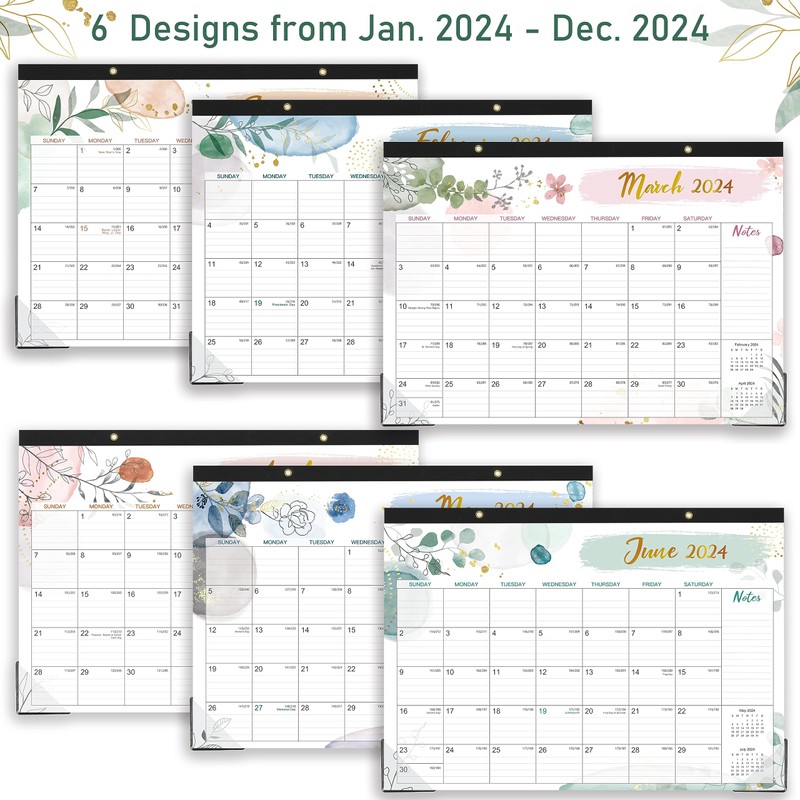 - 📆Amazing Design - This desk calendar 2024 uses 6 different patterns to make you planning your month in a colorful way. In addition, it has perforated pages that are easy to tear, clear corners to hold the pages in place, and two hanging holes that allow it to be used as a wall calendar.