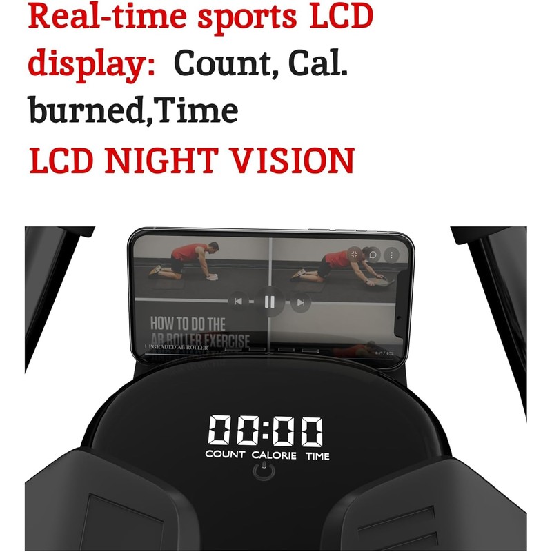 2024 First Ever Calorie Counting Ab Roller High-Performance Abdominal Exercise Machine with Automatic Rebound, Multi-layered Anti-Slip Design & Versatile Exercise Bands