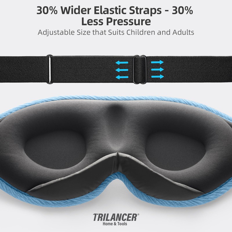 2024 Innovative Sleep Mask for Men and Women, Trilancer 3D 100% Light Blocking Design, Comfortable Eye mask, Blackout Blindfold for Sleeping, Nap, Meditation, Travel, with Earplugs (Blue)