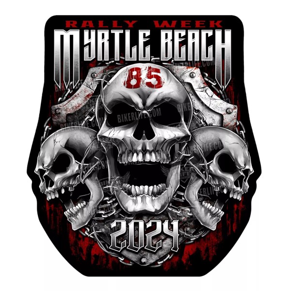 2024 Myrtle Beach Bike Rally Chained Shield Biker Skull Sticker / Decal