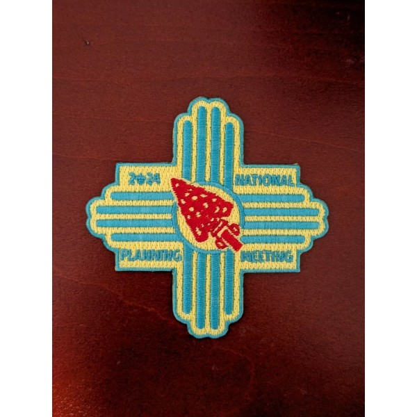 This auction is for a 2024 National Planning Meeting patch. This meeting is where Section Chiefs gather annually to elect their national leadership and plan the program of emphasis, the 2025 National Council of Chiefs (NCOC), which will be held at Philmont Scout Ranch.