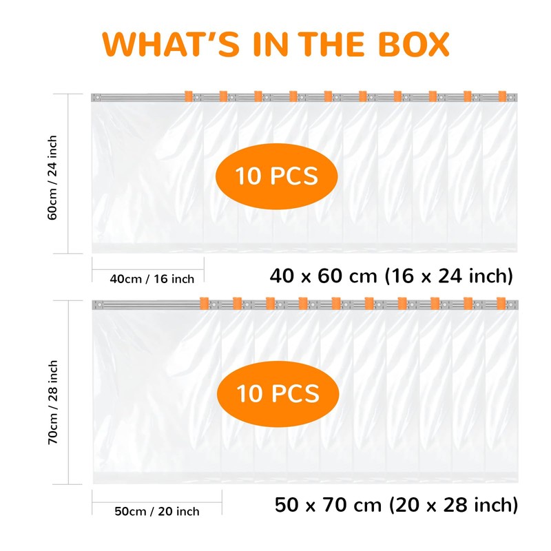 - SPACE SAVING AND HYGIENIC - These vacuum storage bags can not only save you about 80% of storage space, but also protect your clothes, bedding, etc. from dust, moisture etc.