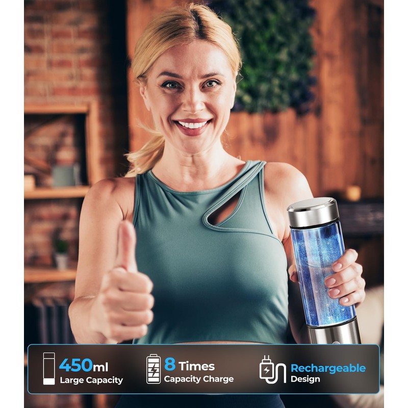 - 【Portable and Lightweight for On-the-Go Use】 – Compact and lightweight, this hydrogen water bottle easily fits into your bag, car, or backpack, making it perfect for home, office, gym, or travel.
