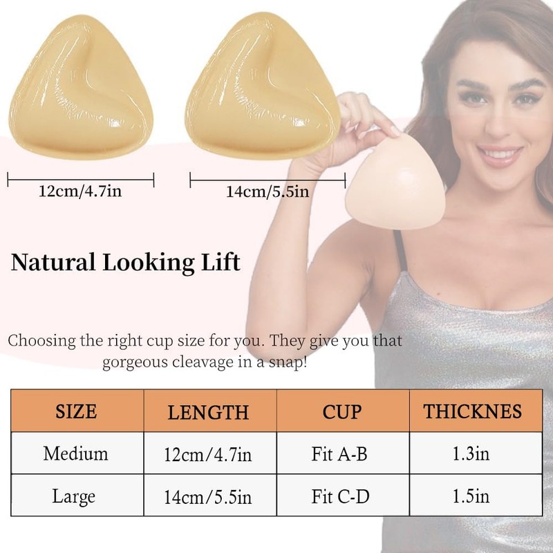- Achieving a Natural-Looking Enhancement: These inserts are intended to be worn inside bras, providing essential support. The sticky bra inserts effortlessly create captivating and naturally-shaped breast contours, while delivering a remarkable lift-up or push-in effect.
