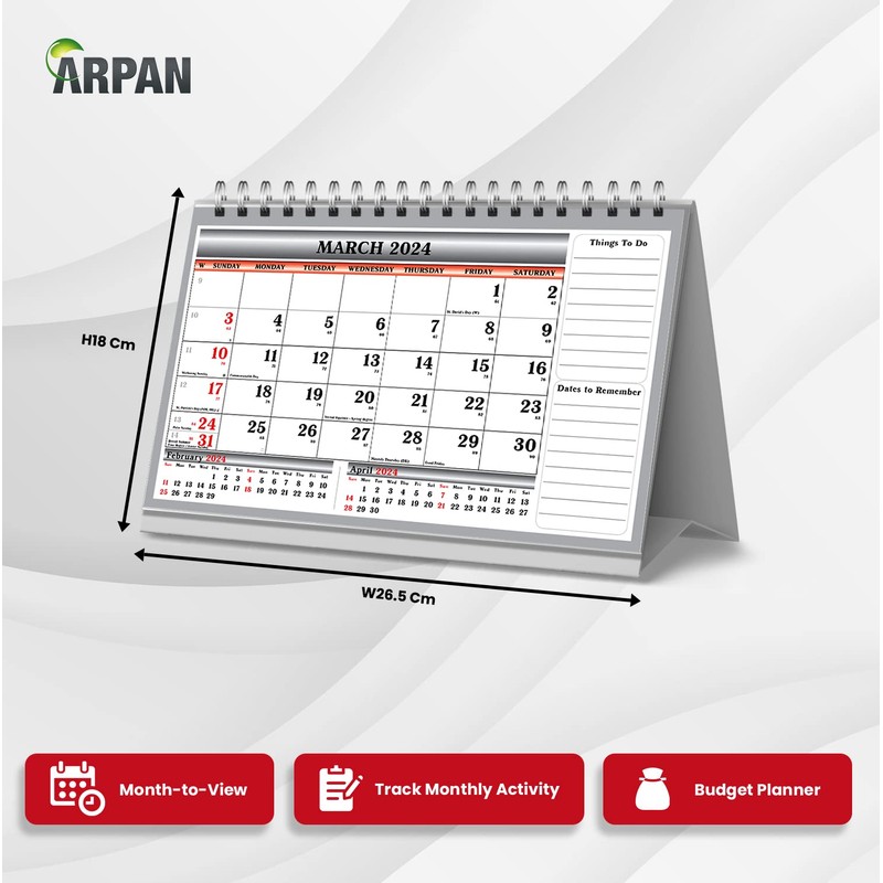 2024 One Month to View UK Stand Alone Desk Office Table Calendar Planner by Arpan