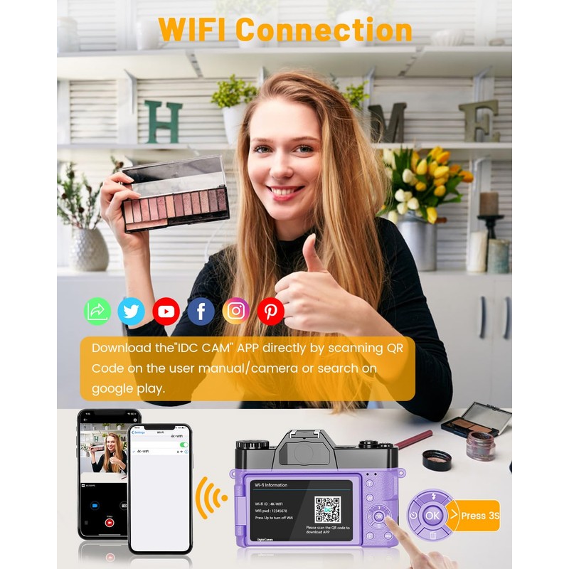 - 【Point and Shoot Camera with WiFi】: Wifi connection can turn smart phone into a wireless remote control and you can instantly transfer files from camera to phone and then to social account, allowing friends to share your happiness for the first time