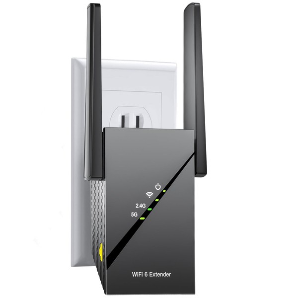 2024 WiFi Extender Signal Booster, 2.4 Gb/s Dual Band (5 GHz/2.4 GHz) Amplifier up to 12,000 sq. ft and 99+ Devices, Internet WiFi Repeater and Signal Amplifier with Ethernet Port, 1-Tap Setup (Black)