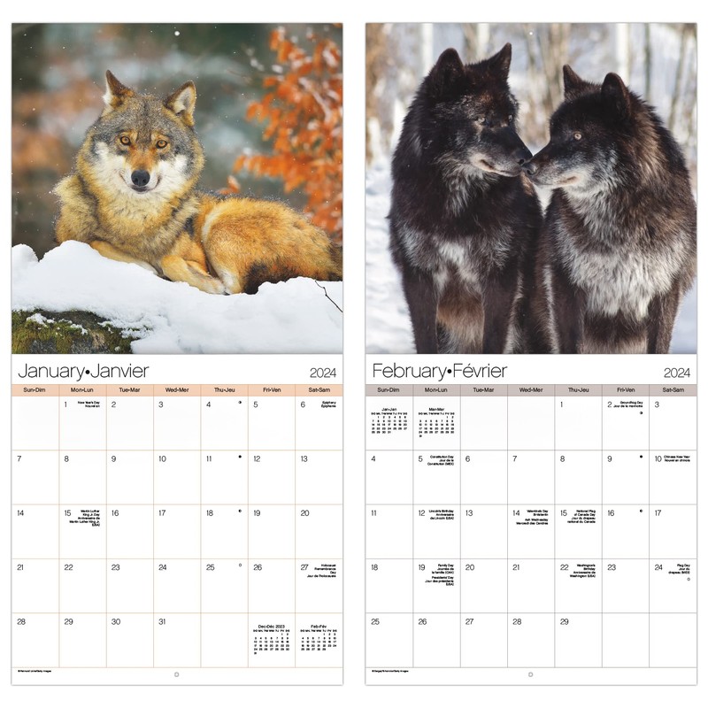 - This 2024 Wolves Wall Calendar features monthly pages for January to December 2024, as well as the last 4 months of 2023
