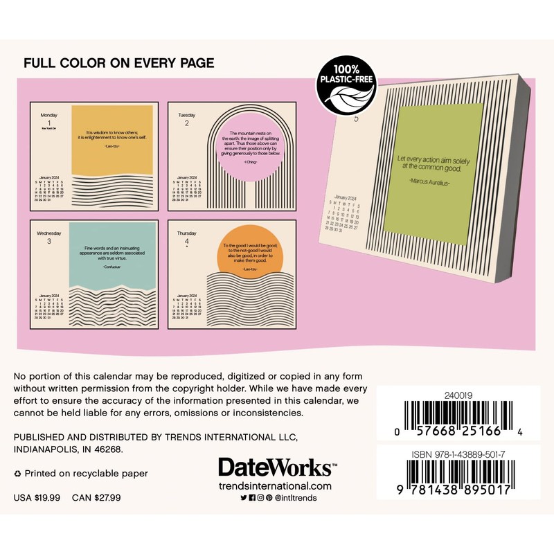 - This 2024 Zen Day-at-a-Time Box Calendar features full-color, tear-off pages with unique content on every page