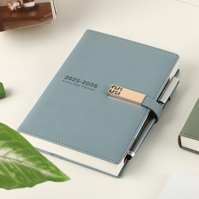 • Functional Details: Hardcover elegant Diary,Colorful monthly tabs for quick checking,on the back inside pocket which can hold some cards, Elastic closure band to keep diary 2025-2026 closed,Bookmarks,Pen and Pen Holder.80GSM Thick paper, makes it silky smooth to write on,bringing you the ultimate writing experience.great for daily planning and organising.help you make a better plan.