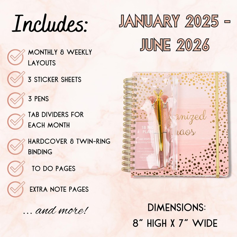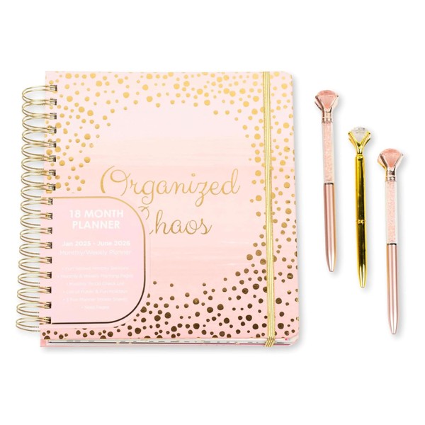 2025-2026 Monthly Large Planner- Daily, Weekly & Monthly Organizer with 3 Pens & Stickers - Organized Chaos Pink, January 2025 to June 2026, Stylish & Durable