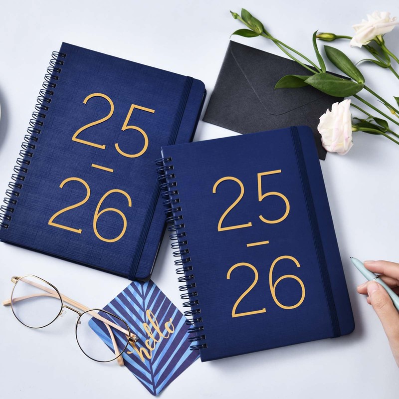 - ★ STURDY AND STYLISH - Take charge of your schedule with unique style and sturdy design. High quality covers and twin-wire binding to keep pages secure for prolonged use. The tight band of academic planner 2025 keeps it securely closed.