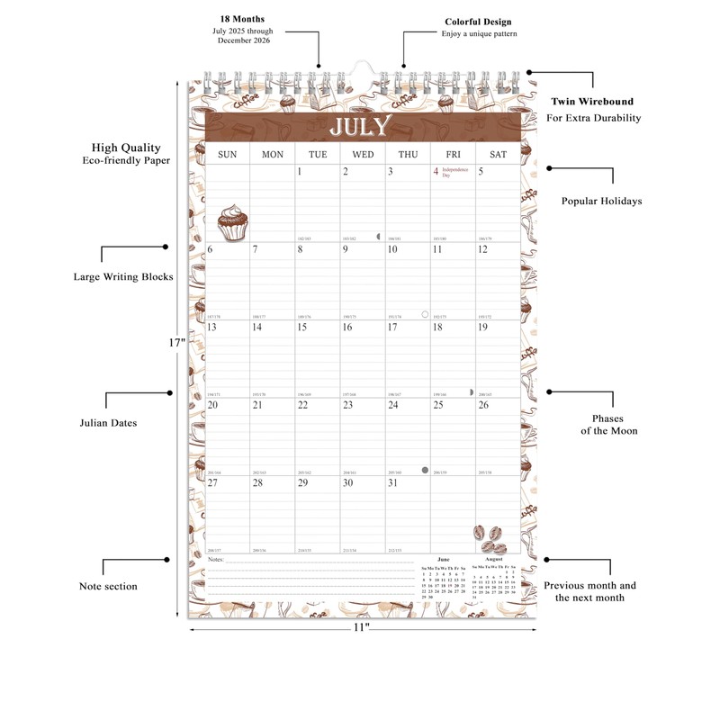 - JULY 2025 - DECEMBER 2026 - The 2026 wall calendar features 18 monthly pages, focusing on easy and efficient planning, scheduling, and tracking for a manageable and successful life. Keep up with appointments, meetings, and events with this 2025 - 2026 Monthly Calendar