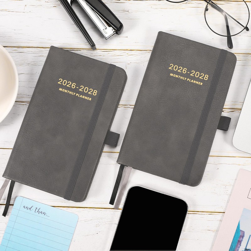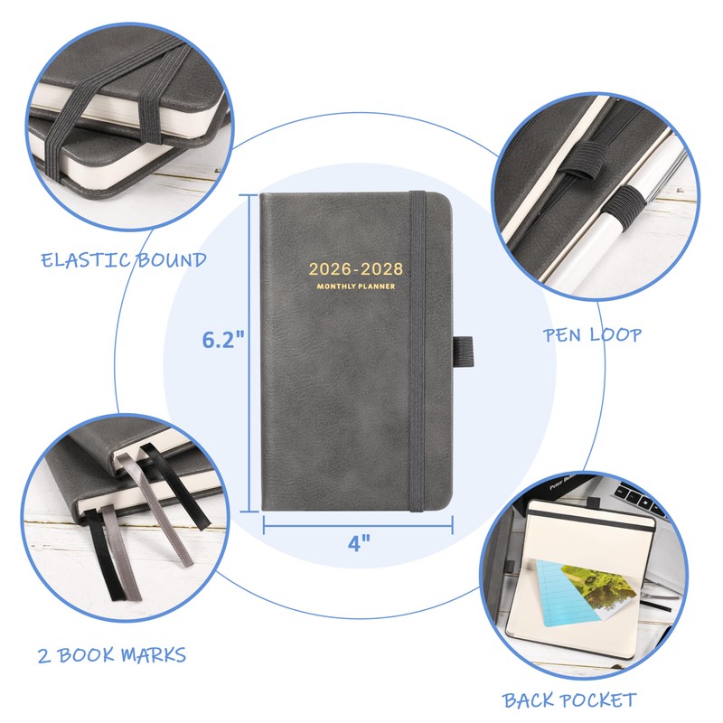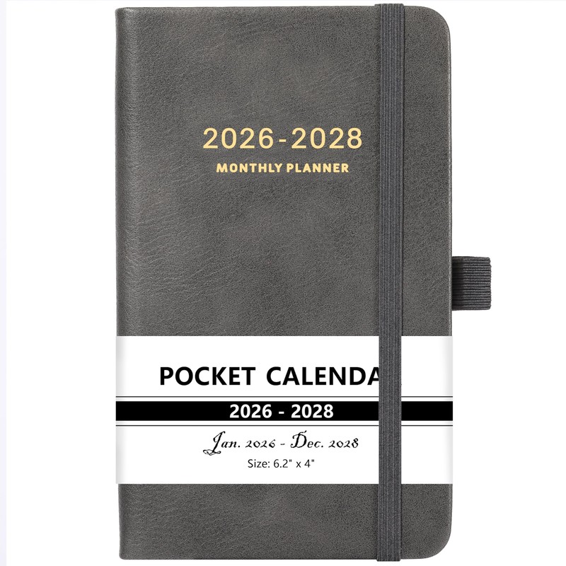 2026-2028 Pocket Planner - 2026-2028 Monthly Planner, Pocket Calendar (36-Month) With 60 Notes Pages, Jan. 2026 - Dec. 2028, 6.2" x 4", 3-Year Planners with Contacts, Holidays and Pen Holder, Elastic Closure - Grey