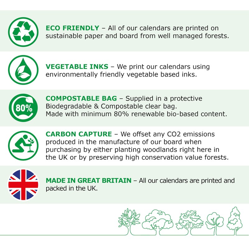 - CARBON CAPTURE – We offset any CO2 emissions produced in the manufacture of our paper and board when purchasing by either planting woodlands right here in the UK or by preserving high conservation value forests.