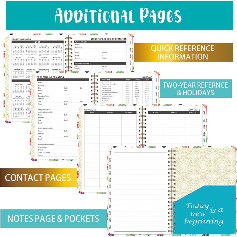 2025 Agenda Academic Planner, January 2025 - December 2025 Planners with Tabs, Daily Weekly Monthly Agenda Planner Organizers, Hardcover Notebook for Academic and To Do List A5 8.66"×6.2" (Flower02)