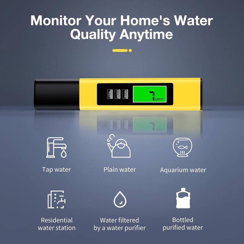 • Multipurpose Tds Tester: Test the purity of drinking water to ensure it's safe and healthy, monitor if Reverse Osmosis (RO)/Deionization(DI) System works properly, whether filter need replaced, maintenance aquarium, hydroponics(test nutrients), well, pool, hot tub, spa and testing tap water, bottle water etc