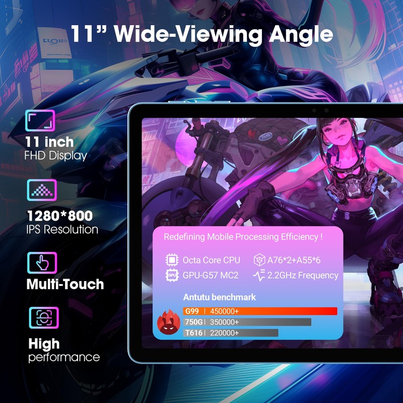 • 11" HD In-Cell IPS Display:Crystal-clear 800x1280 resolution screen with 350cd/m² brightness and 1200:1 contrast ratio delivers vibrant visuals for streaming, reading, and multimedia.