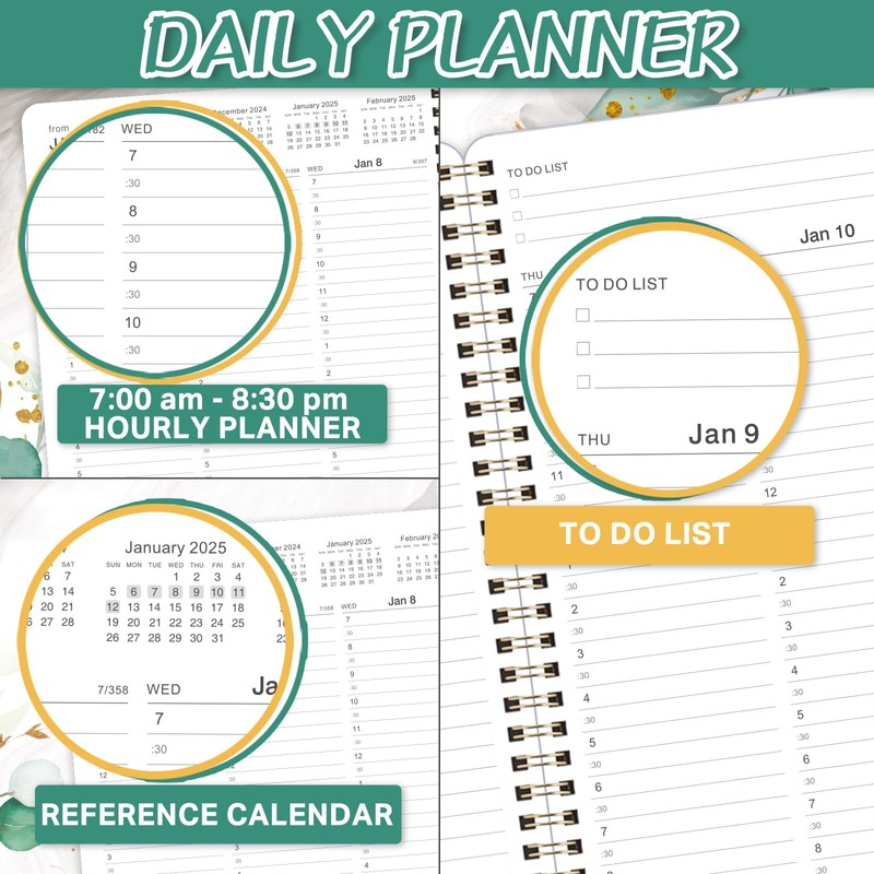 - DAILY PLANNER 2025 - Great for long-term planning, each page in the appointment planner 2025 spread with ruled daily blocks, a notes section, and past/future month reference calendars. Every day pages‘ to do list section help you to keep organized for the whole week with easier planning and tracking.