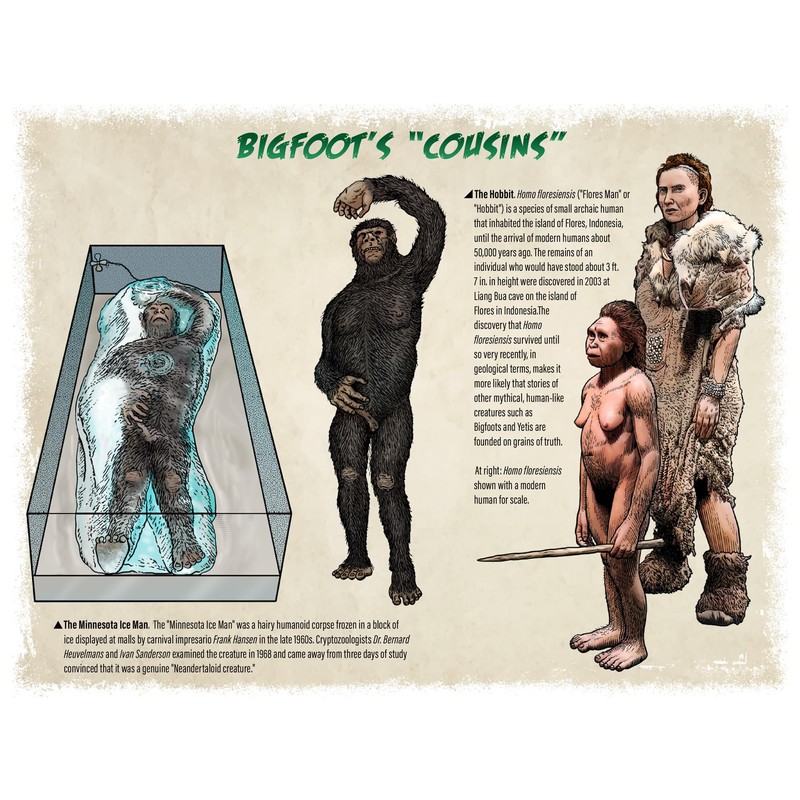 • 13 month calendar featuring Bigfoot and other cryptids: Stay organized and informed all year long with this 2025 wall calendar. Each month unveils a mesmerizing illustration capturing the essence of legendary sightings and haunting encounters.