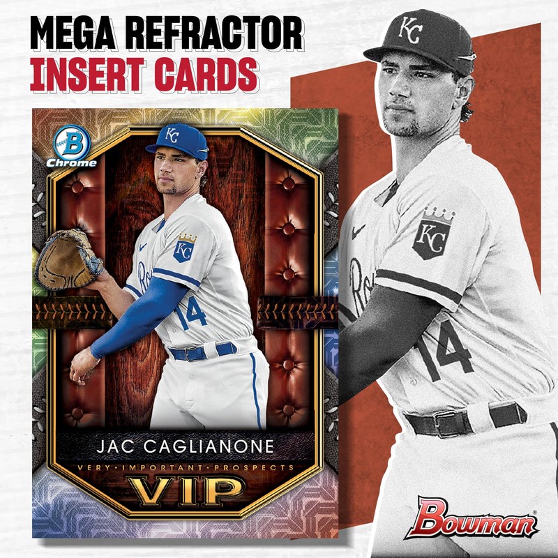 - Top Chrome Cards on the Exclusive Mega Chrome Pattern: Want to engage with some of the most exciting names in the 2025 Bowman Baseball checklist? The Mega Chrome packs feature the Top 50 veterans and rookies from the Base Set, plus the Top 50 Chrome Prospect cards showcased on the exclusive Mega Chrome refractor pattern.