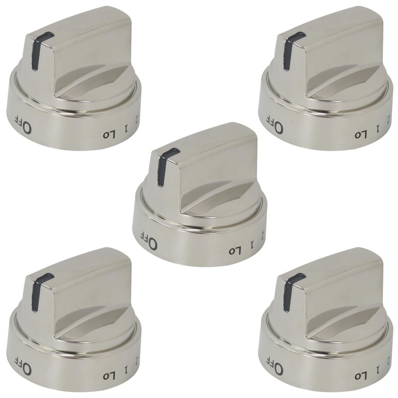 2025 Classic WB03X24818 Stove Knob Replacement Fit for GE Gas Stoves JGB860EEJ7ES JGB860SEJ1SS, Replace AP5989029, PS11729081, Reinforced D-Shape Hole, Silver, 5 Pack