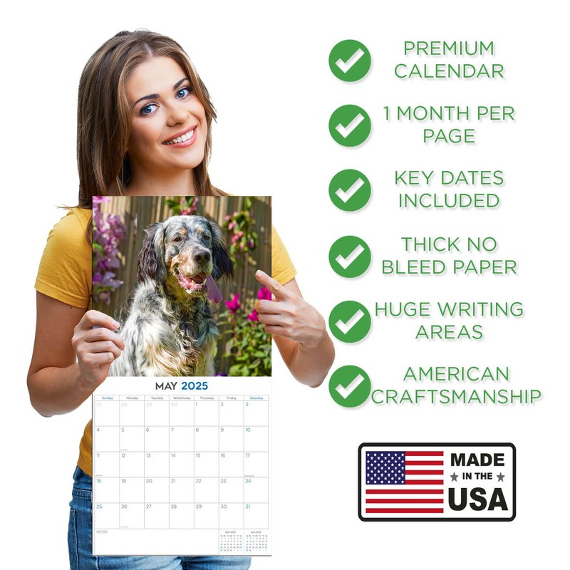 2025 English Setter Calendar - Dog Breed Wall Calendar - 12 x 24 Open - Thick No-Bleed Paper - 14 Month Planner Calendar Organizing & Planning