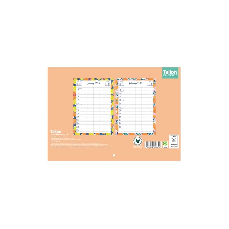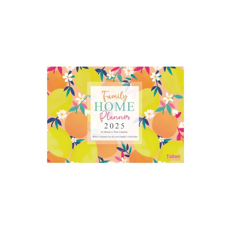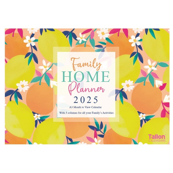 2025 Family Home Planner Oranges & Lemons Design A3 Month to View Calendar 5 Columns