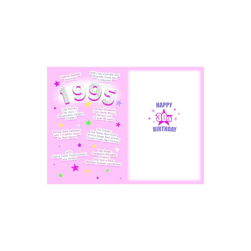 2025 Female Milestone Birthday Greeting Card For Her - Flashback Down Memory Lane - Fun Interesting Facts from The Year You Were Born (30th - Born in 1995)