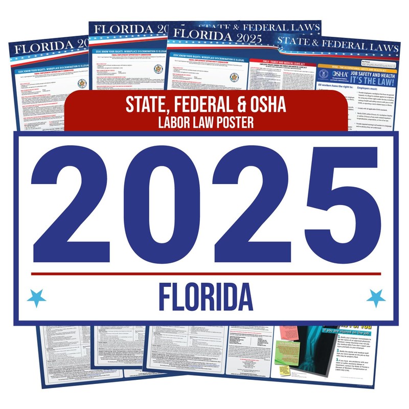 - ✓ 2025 Florida State and Federal Labor Law Poster ensures compliance with updated Florida labor laws, including the updated Child Labor Laws and Minimum Wage update, aligning with OSHA requirements.