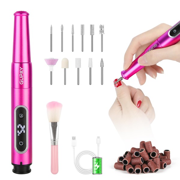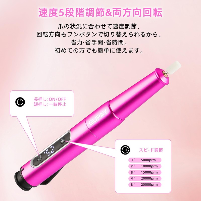 【2025年新登場 充電式】GUPAY 充電式ネイルマシン 電動ネイルマシン ジェルネイル オフ 電動爪やすり ネイルケア 爪磨き 甘皮処理 角質除去 ネイルドリル 正逆回転 充電可能 5段階スピ一ト 25000RPM高速回転 TYPE-C充電 自宅サロン用 専用ビット11個付属