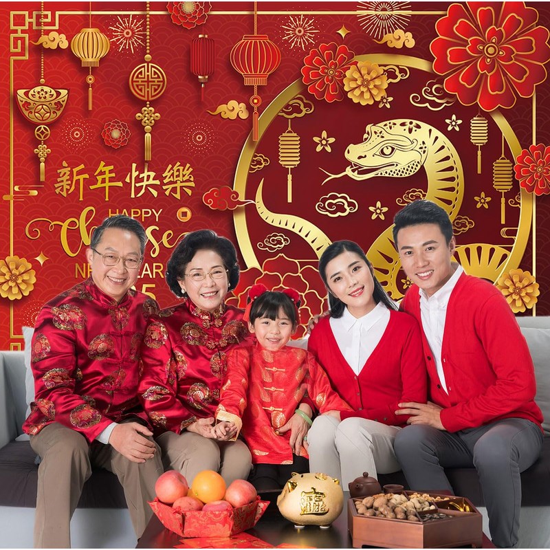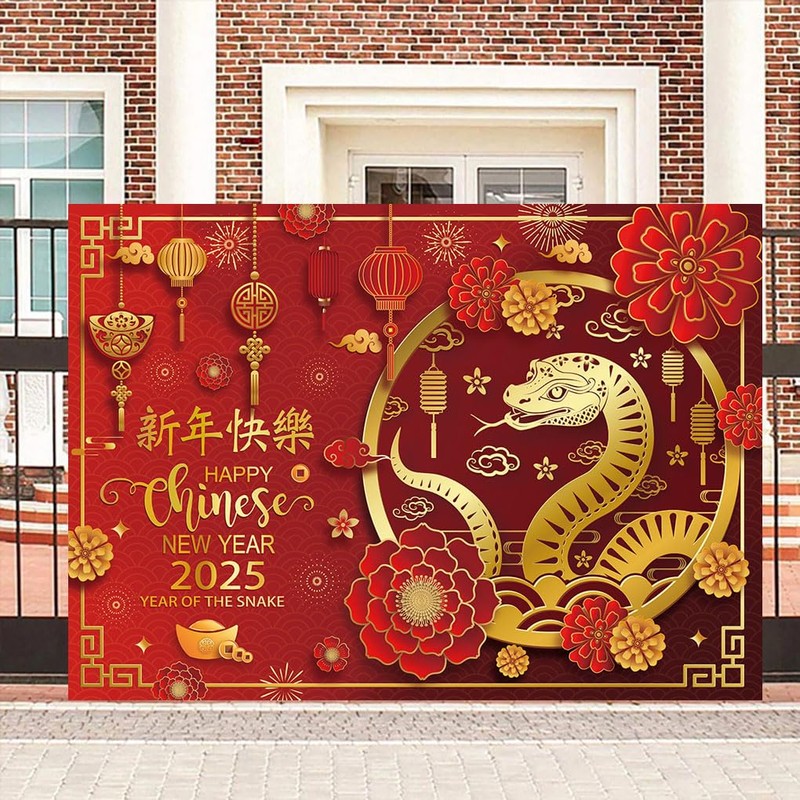 2025 Happy Chinese New Year Backdrop 7x5FT Red Lanterns Year of The Snake Banner Background Traditional Spring Festival Decoration for Holiday Photography Supplies