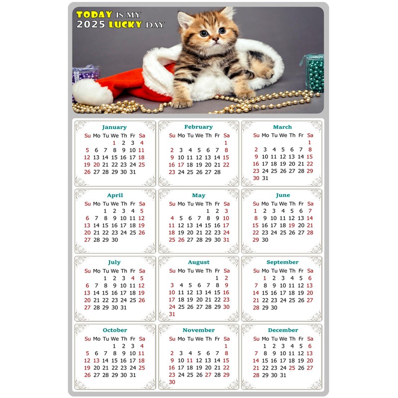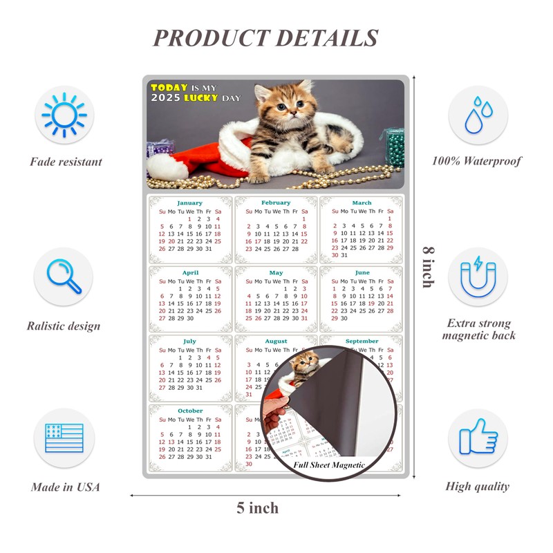 2025 Magnetic Calendar - Calendar Magnets - Today is my Lucky Day - (Fade, Tear, and Water Resistant) - Cat Themed 023 (5.25 x 8)