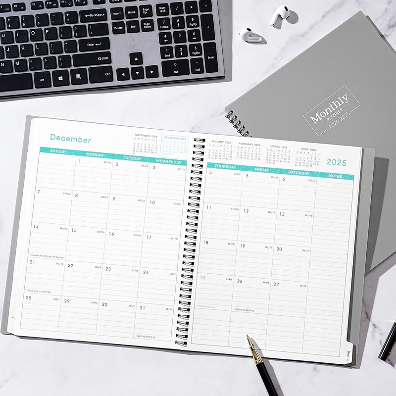 2025 Monthly Planner - Monthly Planner 2025, Jul.2024 - Dec.2025, 8.5'' x 11'', 2025 Planner Monthly with Tabs, Pocket, Twin-Wire Binding - Grey