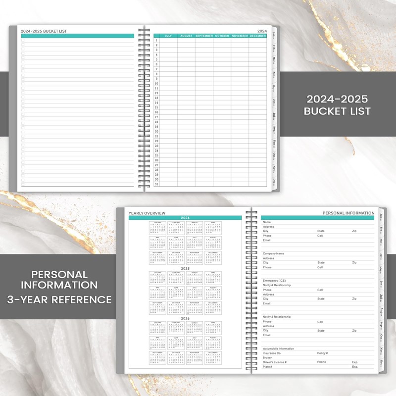 - 🌈 FUNCTIONAL & STYLISH - Twin-wire binding allows 360° folding over. 2025 Yearly Overview/Important Contacts/8 Contact Pages/4 Password pages/12 Notes Pages/Personal Information.