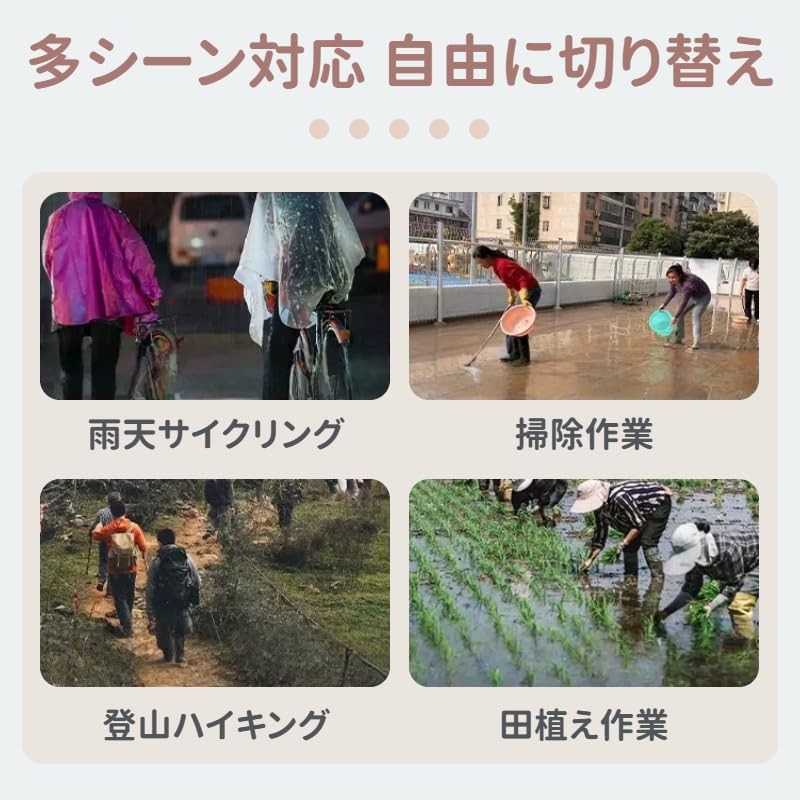 - 【雨や泥はねから守る・サッと着用OK】 このレッグカバーは、ふくらはぎまでしっかり覆うロングタイプで、防水性・防汚性に優れています。水はねや泥汚れからしっかりガードしてくれます。レッグカバーは一体型構造のため、下からサッと履いて引き上げるだけで簡単に着用可能です。レインコートと比べても軽量で動きやすく、足さばきがよいため、ちょっとした外出や作業時にも気軽に使えるのが魅力です。 ※ご使用の際は、靴を脱いでからの着用をおすすめします。靴底の泥や水分によって、レッグカバーの内側が汚れるのを防ぐためです。